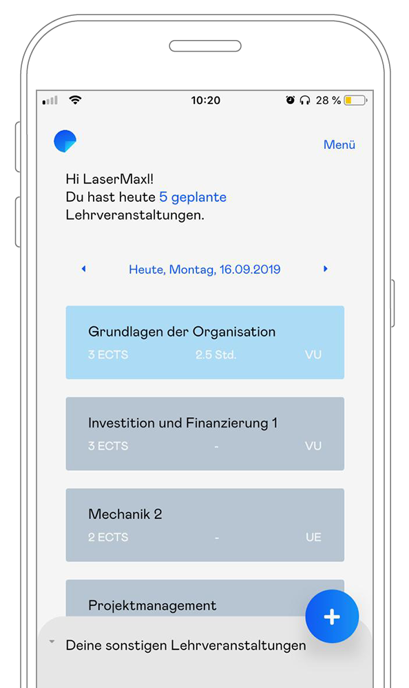 Quinn stellt ein digitales Lerntagebuch dar & ermöglicht Studierenden so einen einfachen Überblick der bevorstehenden Lehrveranstaltungen.