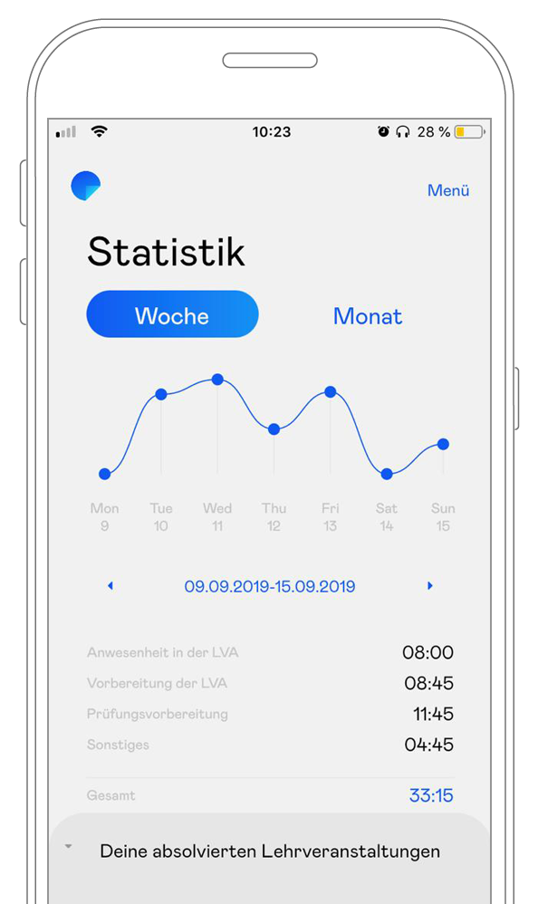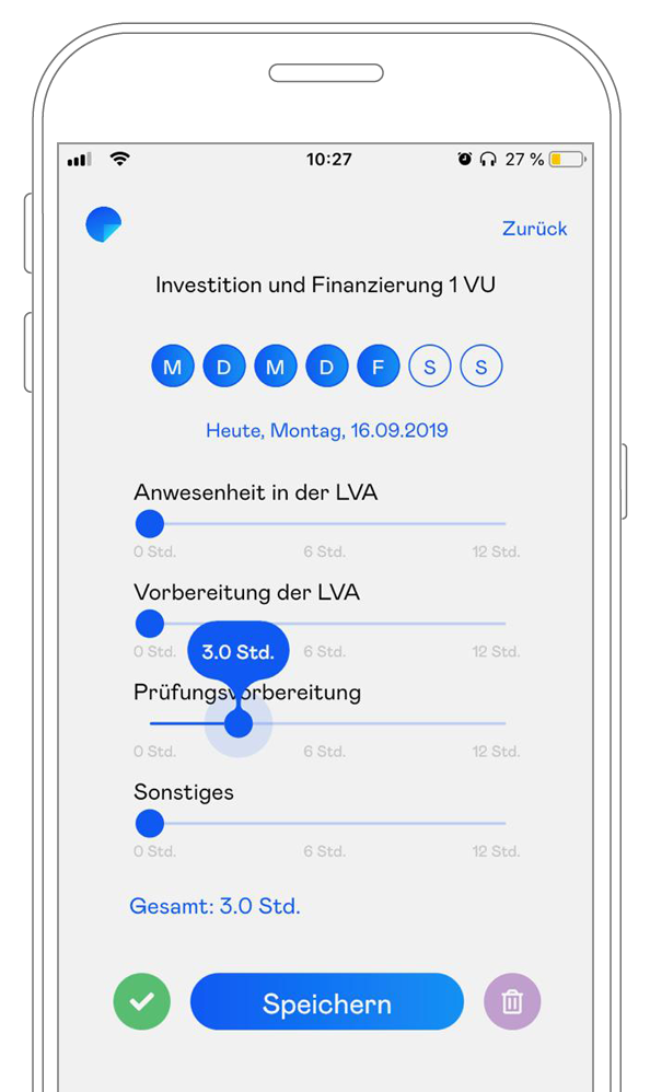 Die App ermöglicht es Studierenden den täglich erbrachten Lernaufwand schnell, einfach und anonym zu erfassen.
